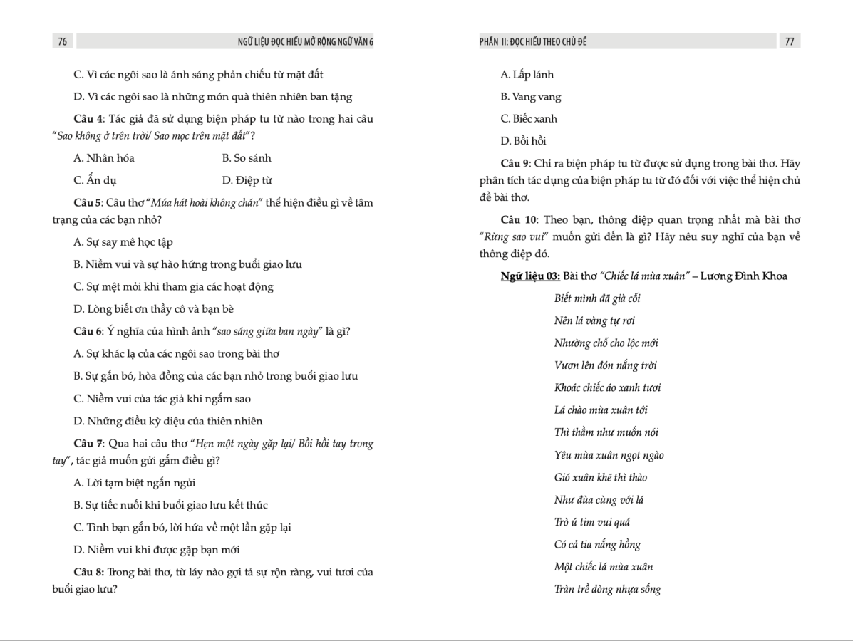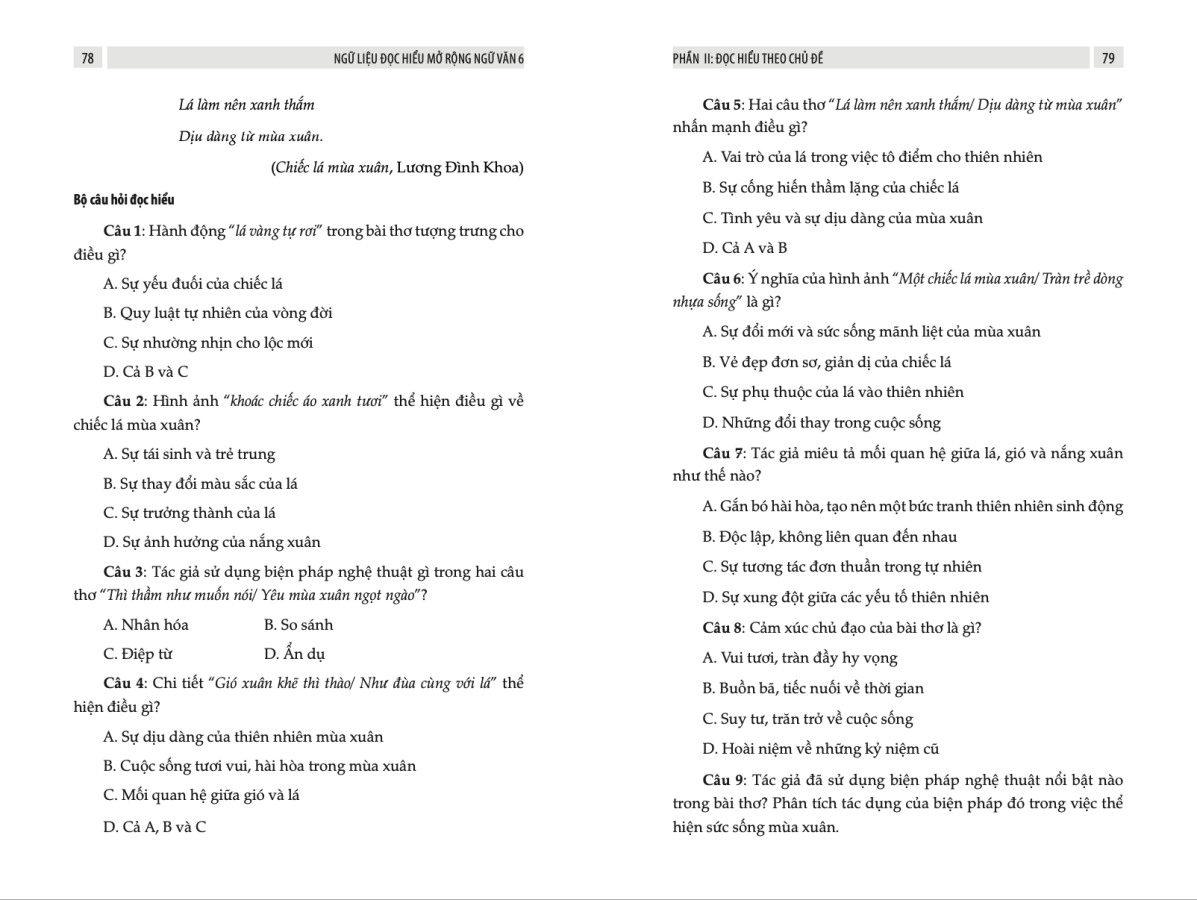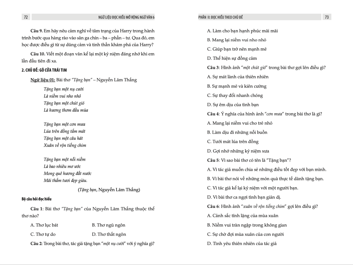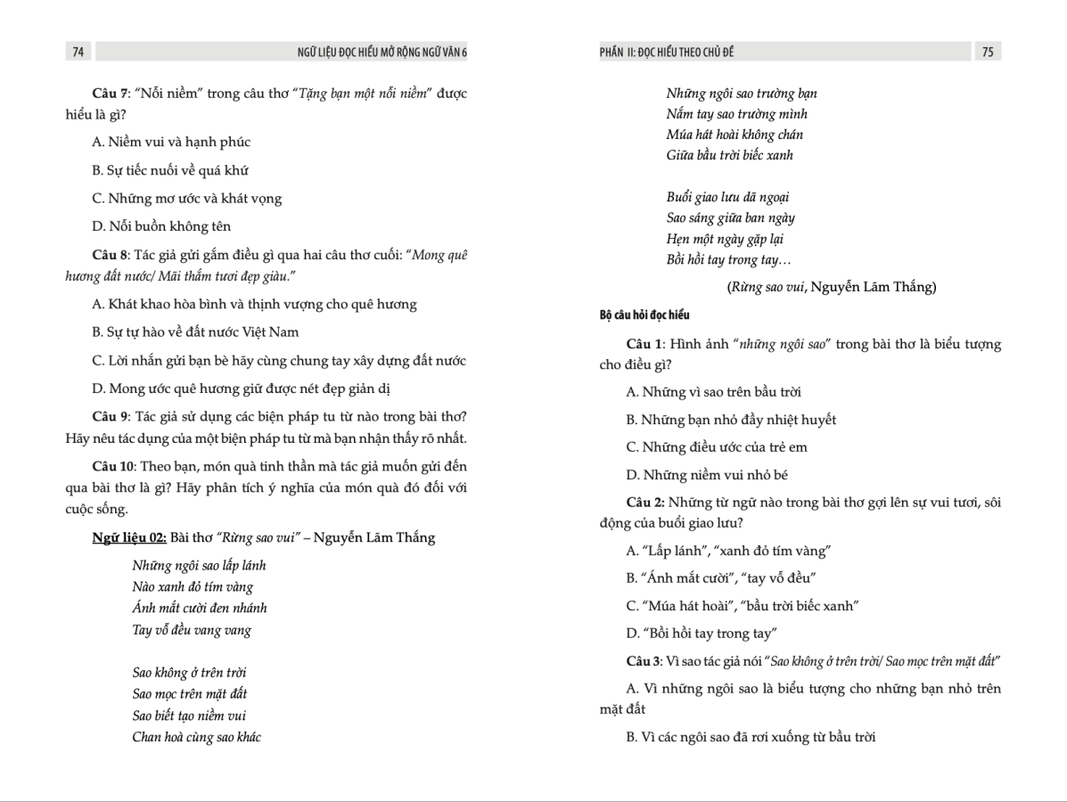 Cuốn sách Ngữ liệu Đọc hiểu mở rộng Ngữ văn 6 đã chọn lọc và tổng hợp một hệ thống ngữ liệu phong phú, kết hợp từ cả ba bộ sách hiện hành, mang đến cho học sinh và giáo viên một công cụ học tập toàn diện.