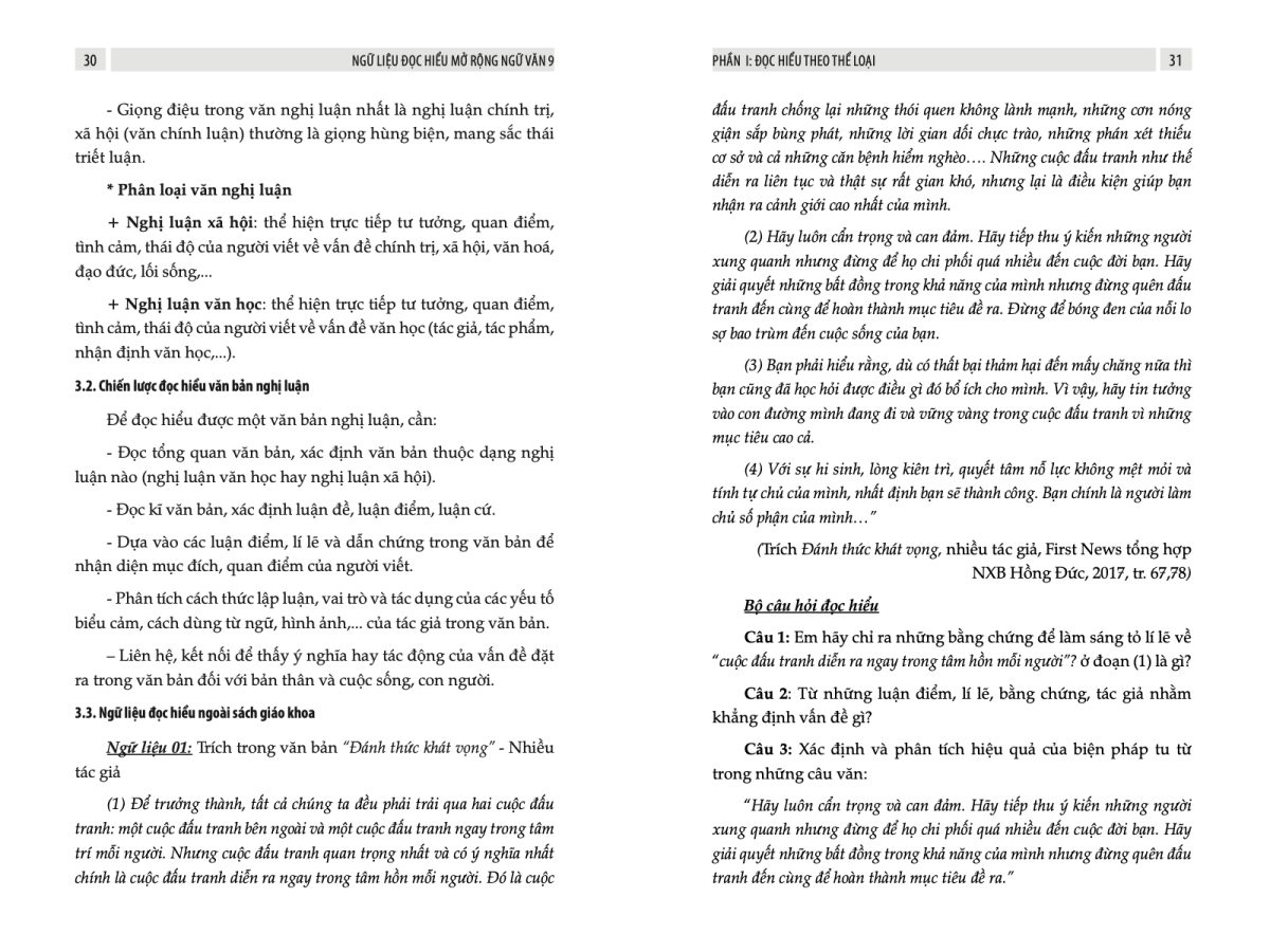 Với ngữ liệu đa dạng, bám sát chương trình, cùng cách biên soạn khoa học, mạch lạc và dễ tiếp cận, cuốn Ngữ liệu Đọc hiểu mở rộng Ngữ văn 9 hứa hẹn trở thành người bạn đồng hành tin cậy, giúp các em học sinh nâng cao kỹ năng đọc hiểu, củng cố năng lực làm bài, phát triển tình yêu với môn Ngữ văn; đồng thời là tài liệu tham khảo thiết thực cho giáo viên trong quá trình giảng dạy và ôn luyện.