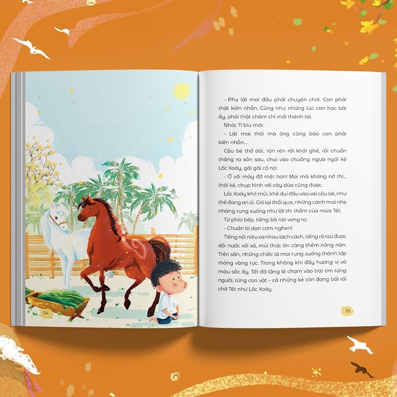 “Tết Ngựa yêu thương” là một câu chuyện thiếu nhi mang hơi thở dịu dàng, nơi hành trình phiêu lưu hòa quyện với hành trình trưởng thành. Nhân vật trung tâm là chú ngựa hoang Lốc Xoáy vô tình lạc vào miền quê sông nước Nam Bộ.